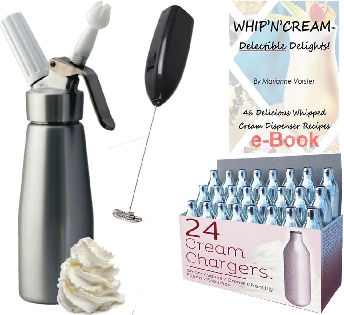 Amazon Com Whip N Cream Whip Cream Dispenser 46 Recipes Milk Frother 24isi Best Whip Or Mosa Chargers Included 1 Pint Home Kitchen